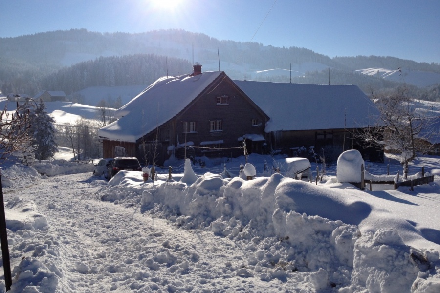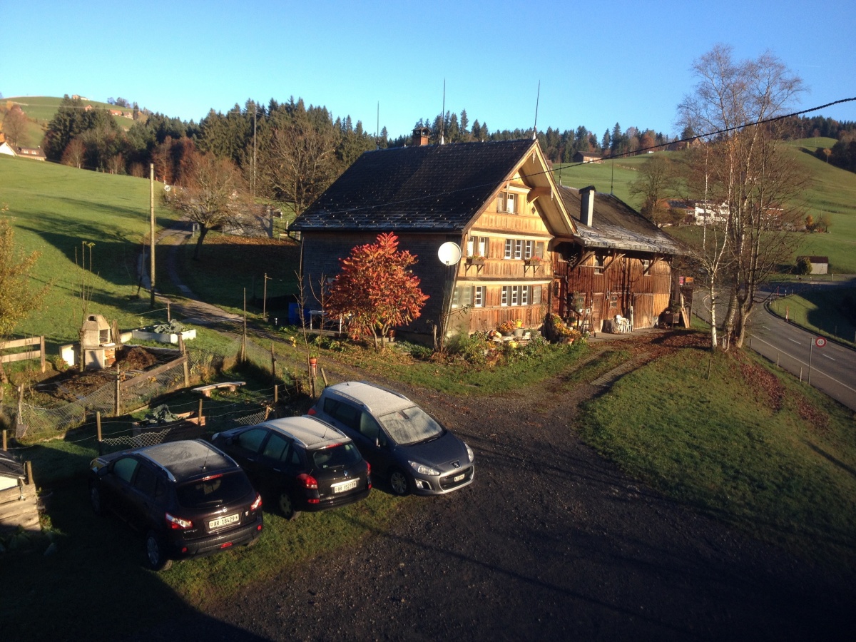 Altes Appenzellerhaus mit 4 DZ und 2 EZ, Küche, Esszimmer und Stube, Holzheizung mit Kachelofen, sonniger Sitzplatz.